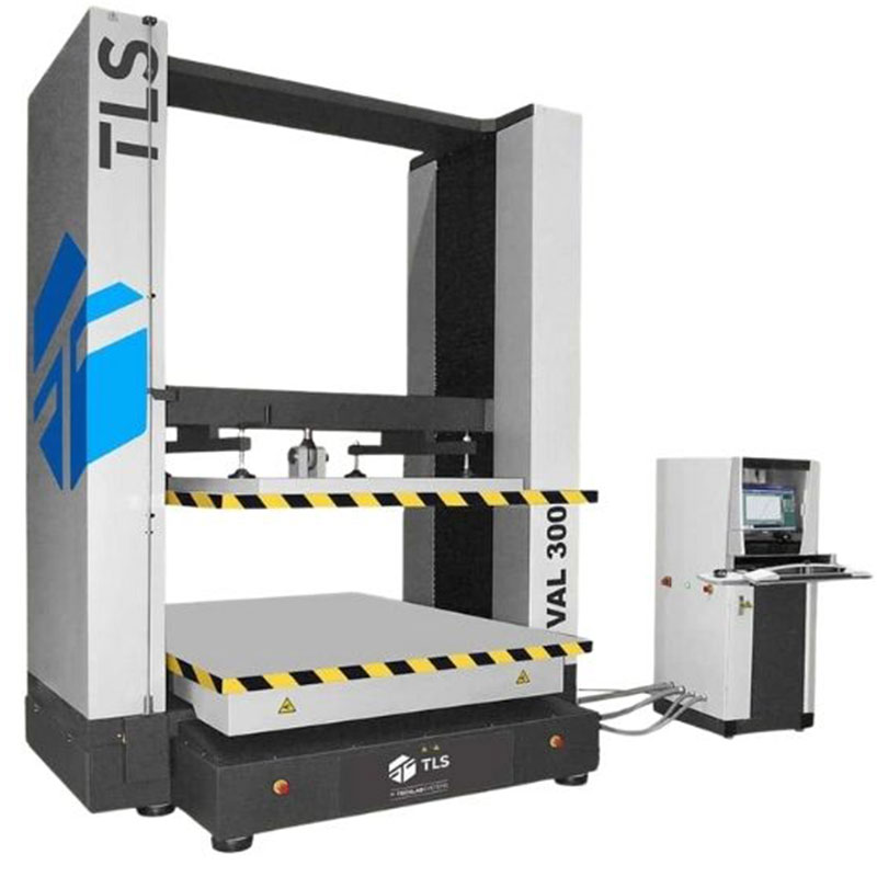 The VAL-100 Box Compression Tester Machine has a maximum force capacity of 100 kN and is designed to perform compression resistance tests to big boxes, pallets, packing and packaging up to 1550mm x 1550mm.