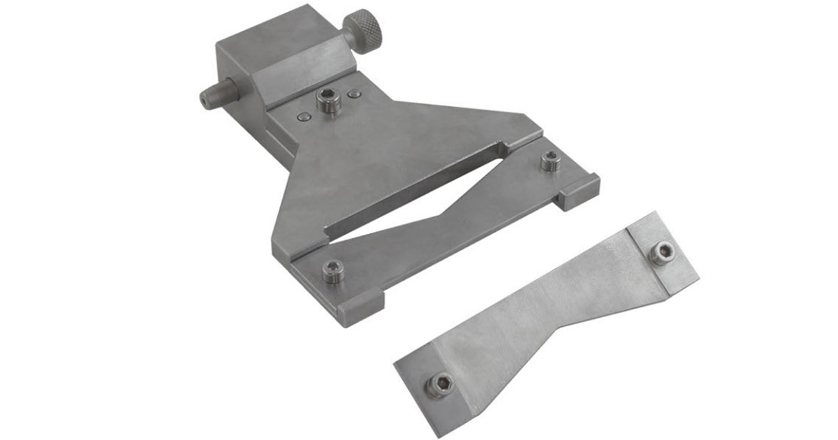 Special holder for reliable edge tearing strength testing of paper, designed in accordance with TAPPI T470. It’s made from stainless steel and ensures stable specimen positioning and reproducible results. An upper grip is required for testing.
