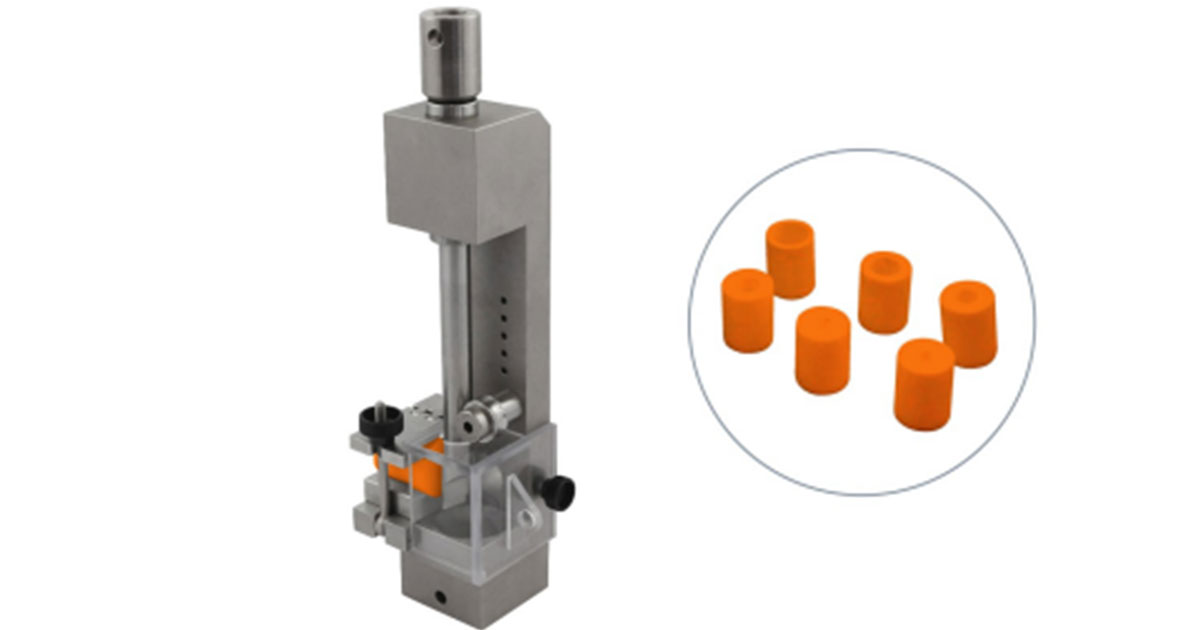 Precision test fixture designed to evaluate the breakage resistance of Luer cones used in medical connectors and syringes.