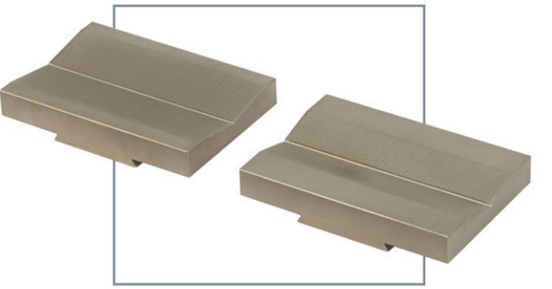 Special ribbon grip with titanium nitride coating for tensile tests on abrasive belts.