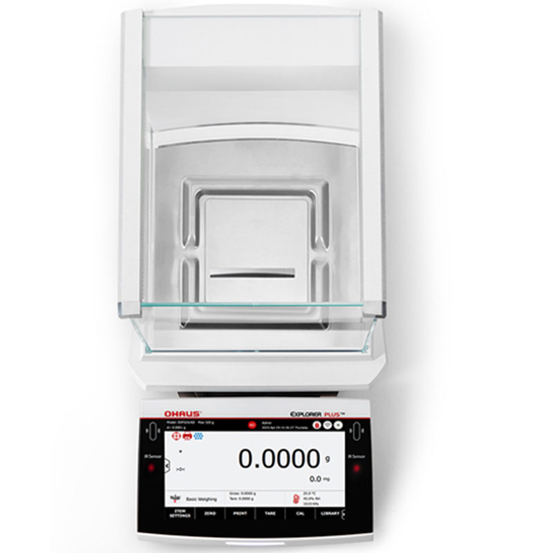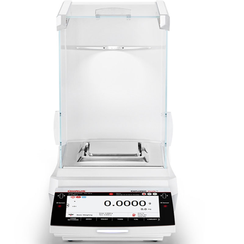 - Built-in ioniser reduces static electricity in the weighing chamber of the analytical balance for consistent results.