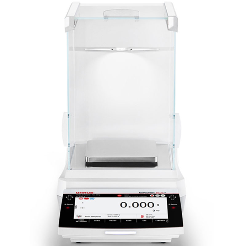 - Built-in ioniser reduces static electricity in the weighing chamber of the analytical balance for consistent results.